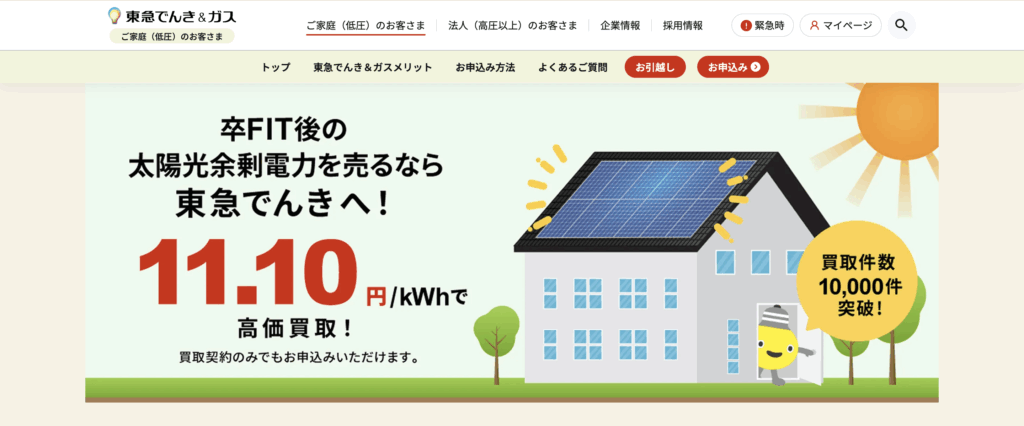 | 東急パワーサプライ | 太陽光電力買取サービス | 12円/kWh |
